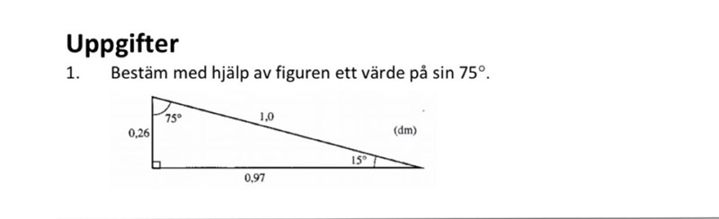 Hej! Jag fastnade på en fråga som vill att jag ska med hjälp av figuren bestämma ett värde på sin 75•,, hur ?