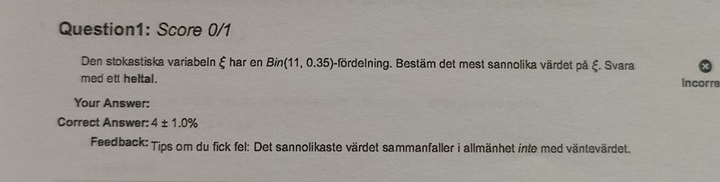 Hur löser jag den här uppgiften? Vet att n=11, p=0.35 och x=0.0563 enligt tabell. Men vet inte hur jag ska få ut värdet på stokastiska variabeln. Tacksam för hjälp!