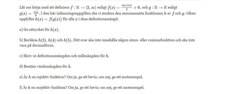 Jag vet att funktionens värdemängd är alla element i Y som är bilden av ett element i X. Värdemängden består alltså av alla element tillhör sådana att det finna ett a i X så att .