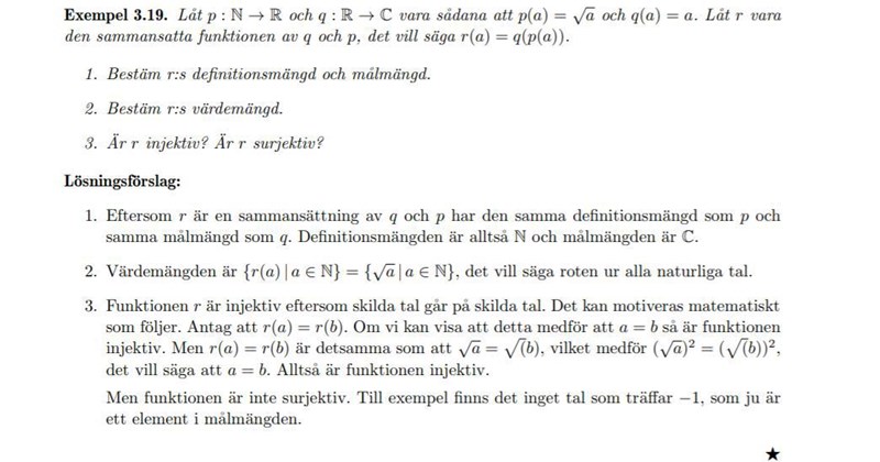 Vidare är t.ex. , det finns alltså olika element i den du anger som avbildas på samma element i målmängden (om jag tolkar dina beteckningar rätt).