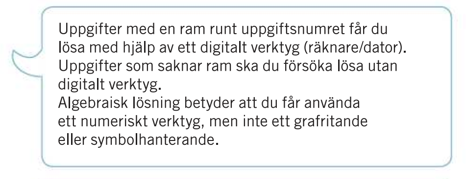 Problemet är att rutan inte betyder detta. Denna övningsuppgift skall lösas m.h.a. ett digitalt verktyg. Man sätter dock ingen begränsning på vilken sorts digitala verktyg det handlar om.