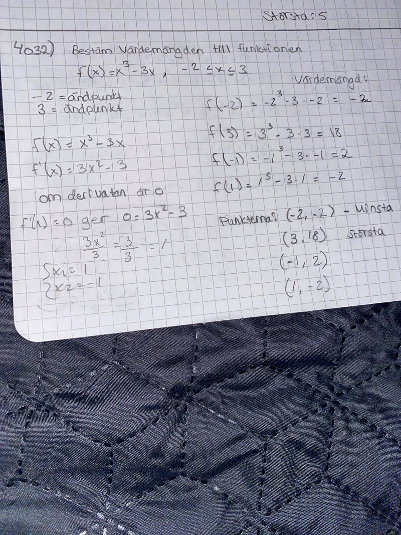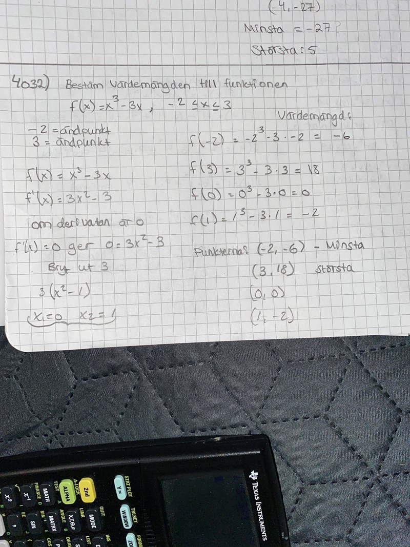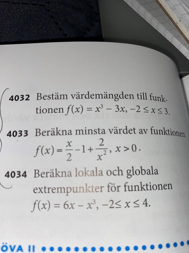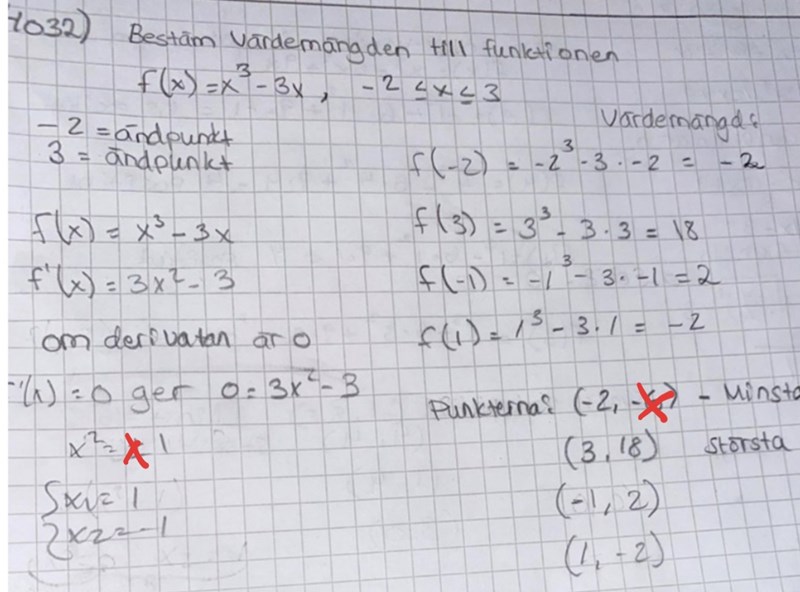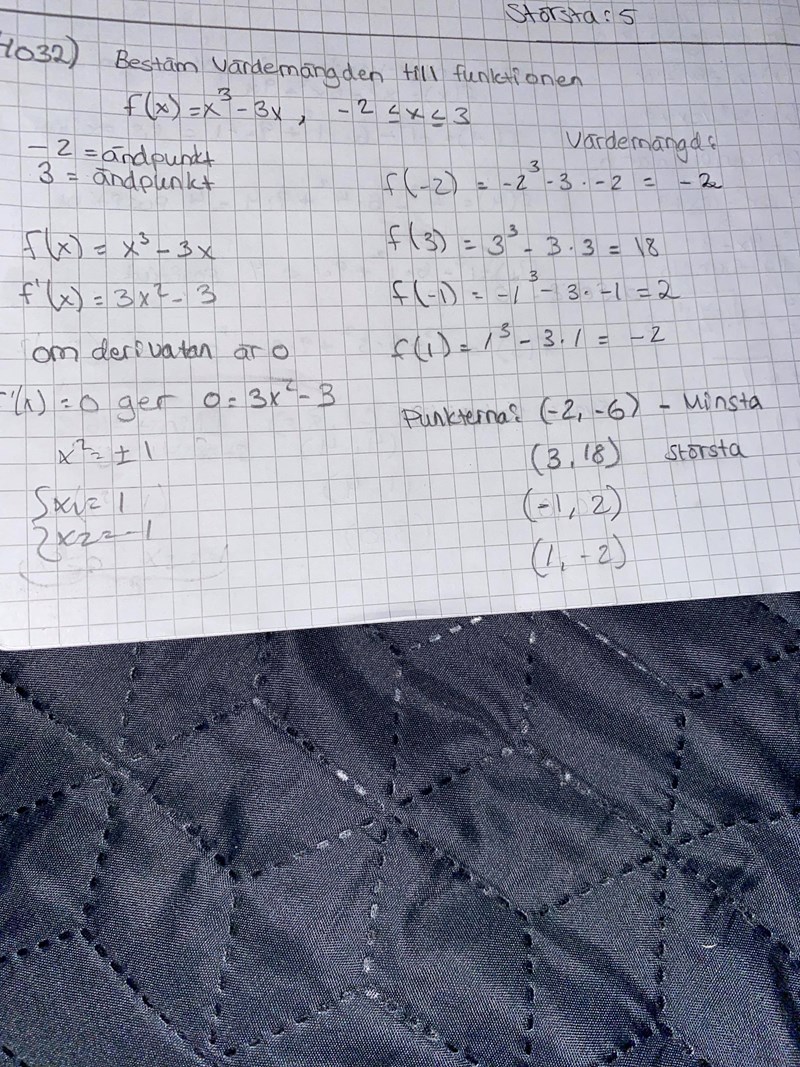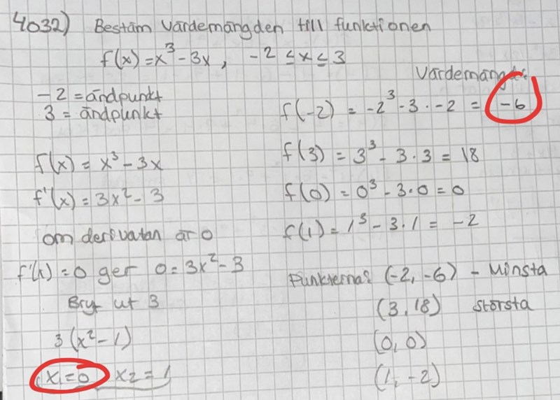 Kan du ta fram största och minsta värde till funktionen i intervallet ?