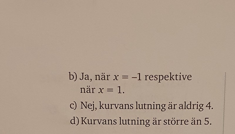 På d-uppgiften står det att kurvans lutning är större än 5, precis som du har skrivit.