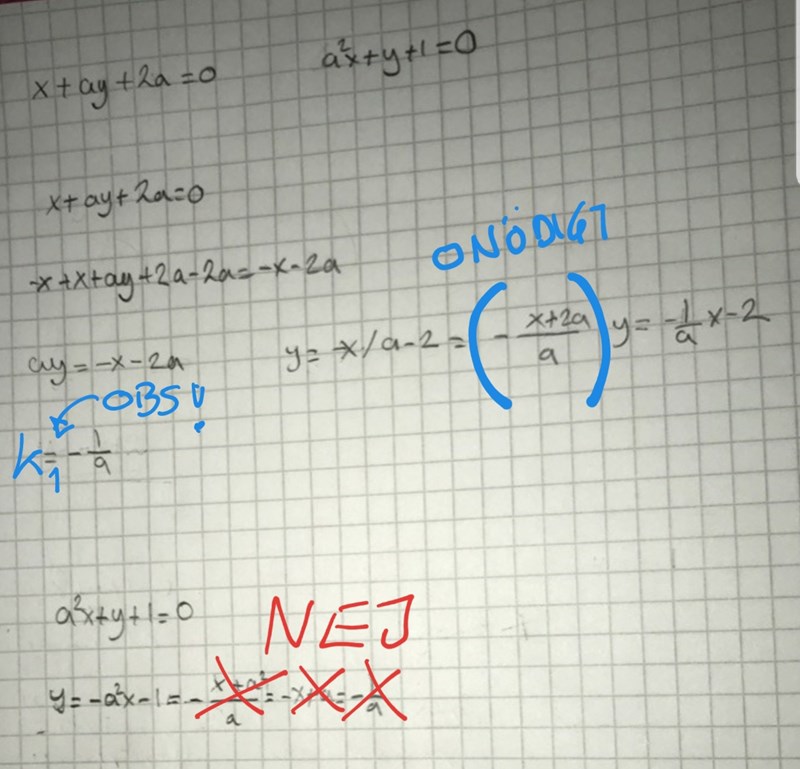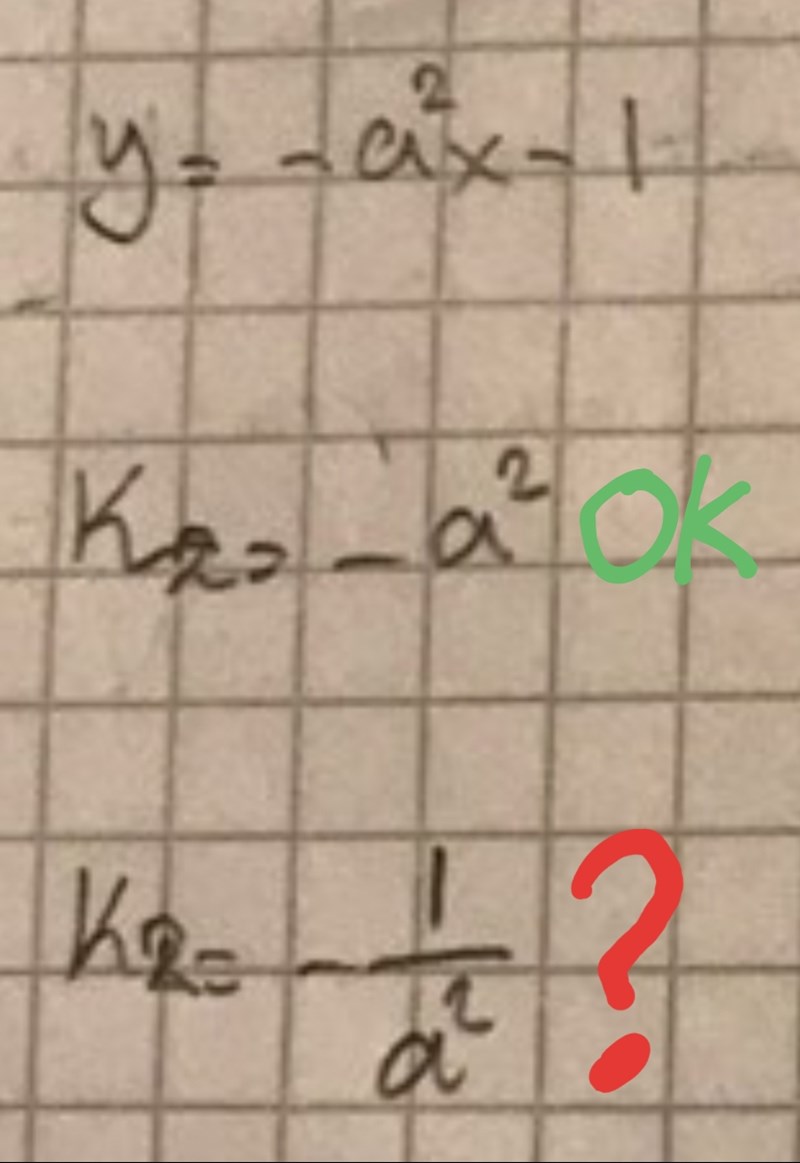- Du måste veta ifall två linjer är vinkelräta mot varann måste K1*K2= -1, om du kommer ihåg