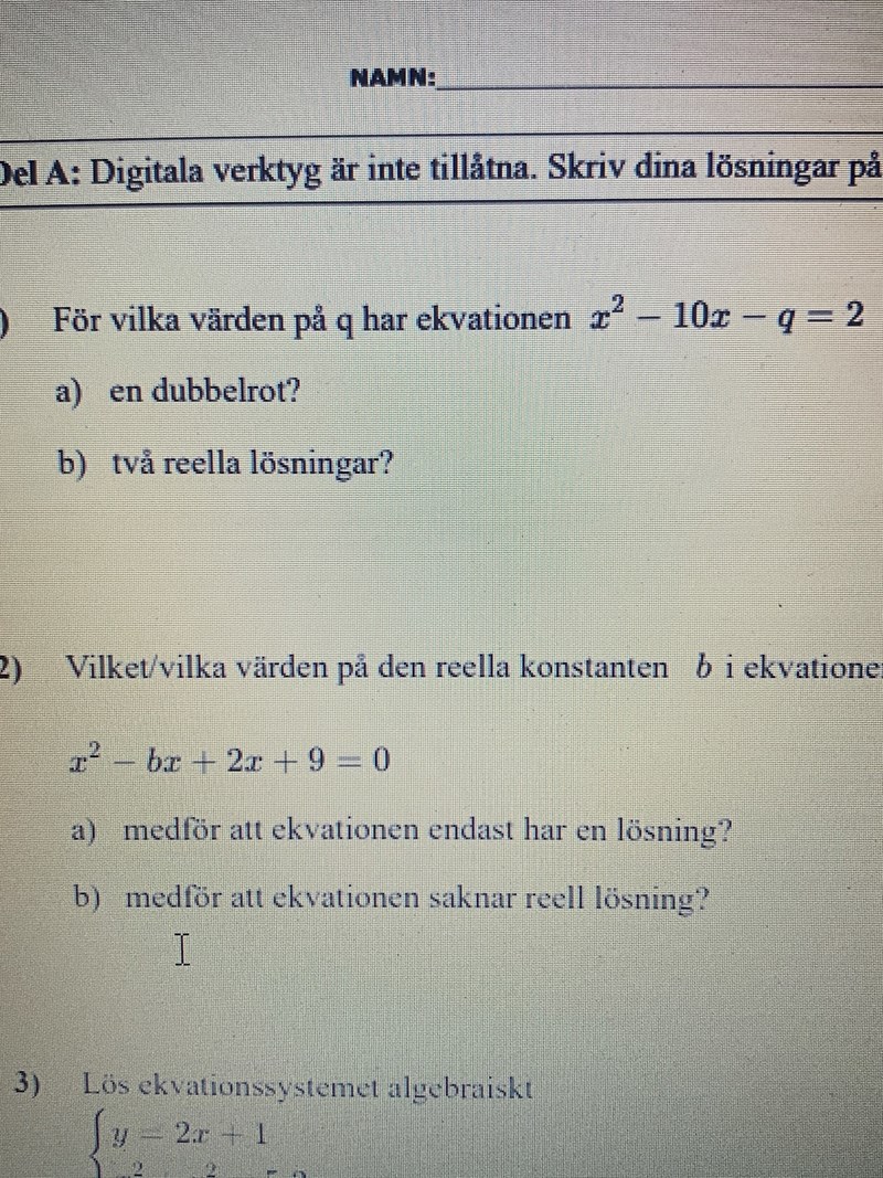 Vilka värden på q gör så att du får två möjliga värden på x?