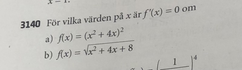 På b) så kom jag fram till att (2x+4)/(roten ur x^2 +4x+ 8).