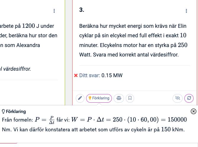 Felet i ditt svar är dock enheten snarare än storheten. Watt är en enhet för effekt. Det som efterfrågas är energi, vilket mäts i Nm (eller J).