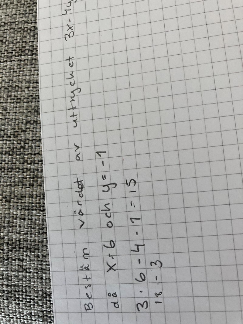Tips: Var försiktig när du använder likhetstecknet. Det betyder att det är lika mycket på båda sidor (och inte ”svaret blir”). Nu har du matematiskt skrivit att