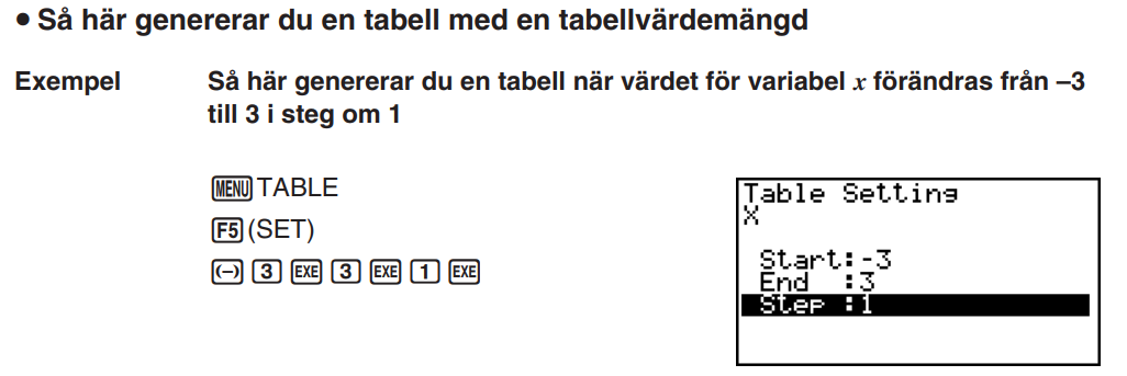 Strax efter kommer instruktioner om hur du redigerar värdena och ritar en graf.