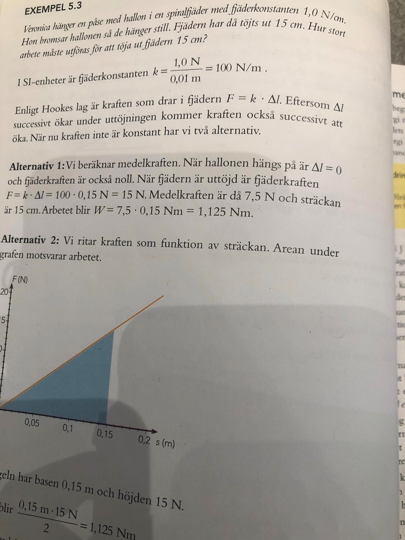 Men i lösningen står det att man ska beräkna med ”medelkraften” , dvs 15N/2=7.5N. Vilket jag inte alls förstår. Varför ska medelkraften användas och när ska man beräkna med medelkraft i fysik uppgifter?
