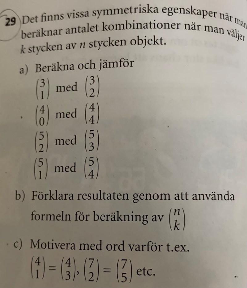 Man kan också använda sig av pascals triangel men det vill man kanske intr att du gör i uppgiften.