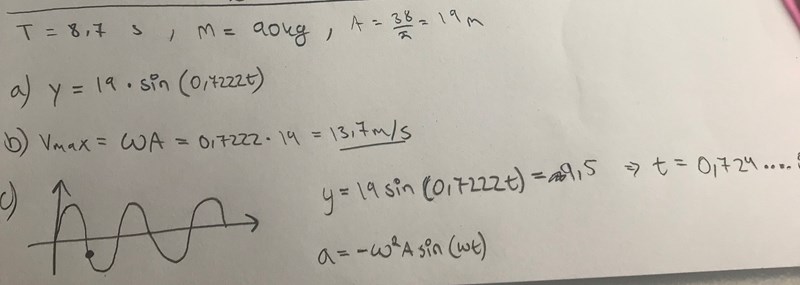 Hej, följande uppgift finns i min fysikbok och jag undrar varför man vid svaret säger att accelerationen är positiv (man fick ju -5 m/s^2) och riktat mot jämviktsläget?