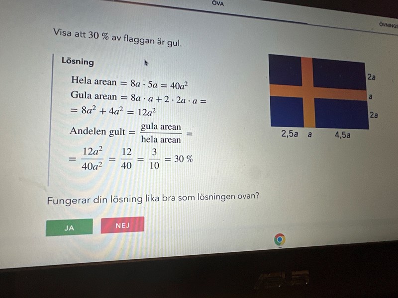 En rektangel är hela den horisontella gula fältet som är 8a bred och a hög, arean är 8a * a.