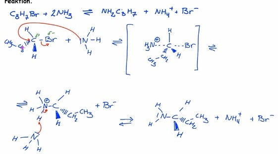 1. varför är aktiverat komplex inte som helhet negativt laddad?. För Om det var OH- istället för NH3 som nukleofil så skulle det aktiverat komplexet vara negativ laddad, för typ då får den liksom 1 extra elektron från NH3 men varför gäller inte samma logik här?