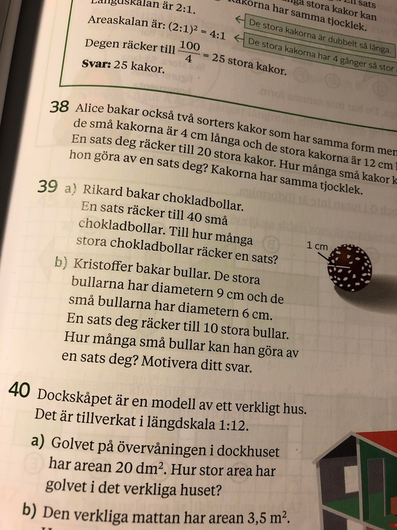 jag löst dessa tal (39) men varför behöver man ens använda sig av volymskala? Är det inte gjort för vikt? Borde inte det vara areaskala?
