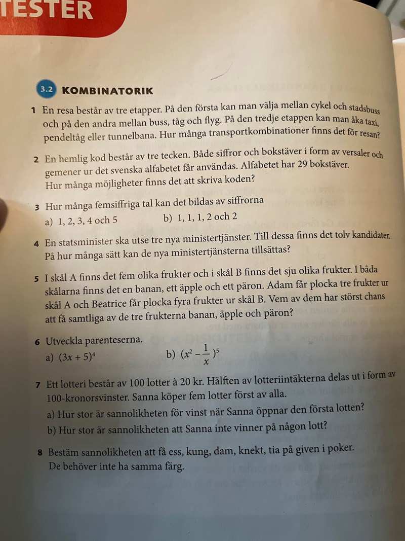 Hur skulle uppgiften ha kunnat formulerats om de frågade om antalet kombinationer?