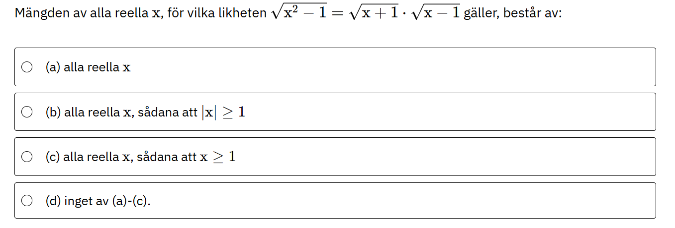 I sådana fall, om man uttvecklar nedanstående uttrycket till uttrycket i frågan. Blir alternativ C ett korrekt svar då man utgår ifrån andra intervall?