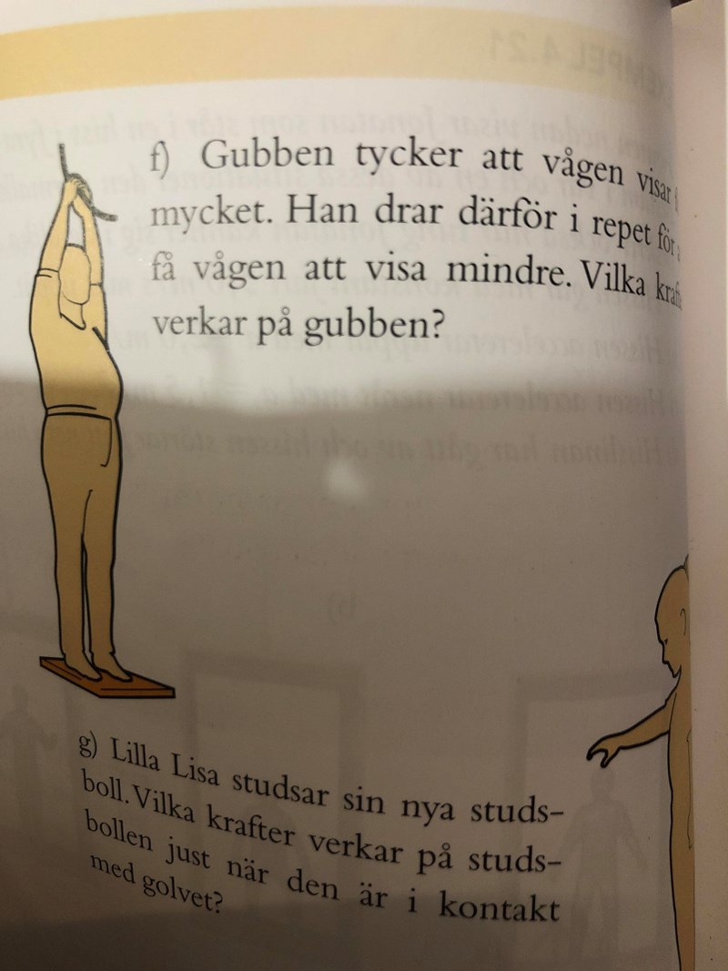 Varför ska gubbens dragkraft vara riktat uppåt när han drar neråt?
