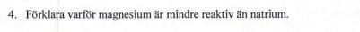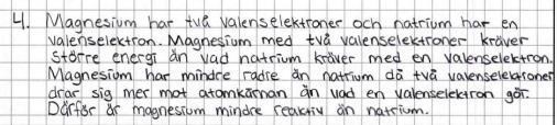 Det känns som att du har skrivit ”runt” svaret. Natrium är mer reaktivt än magnesium p.g.a: