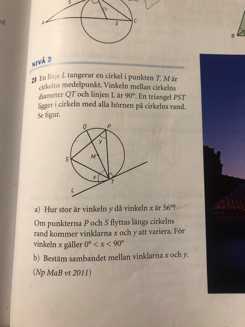Jag förstår inte riktigt varför vinkel x och y är lika stora i uppgift a, har det att göra med randvinkelsatsen eller något annat samband?