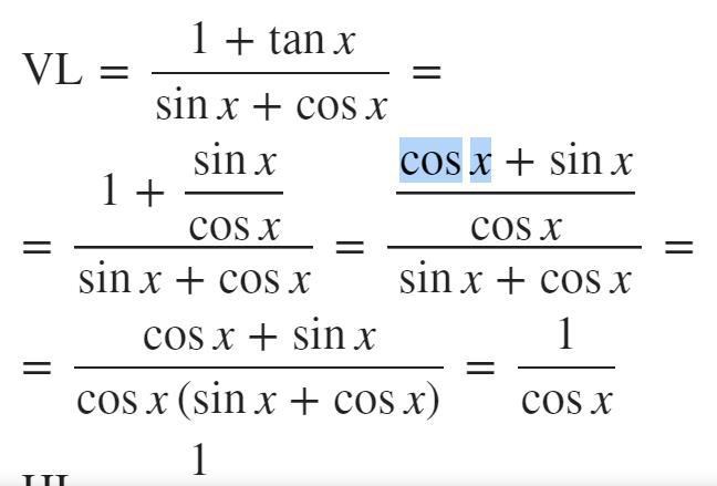 1 = cos(x)/cos(x), och så har de satt summan av bråken på gemensamt bråkstreck.