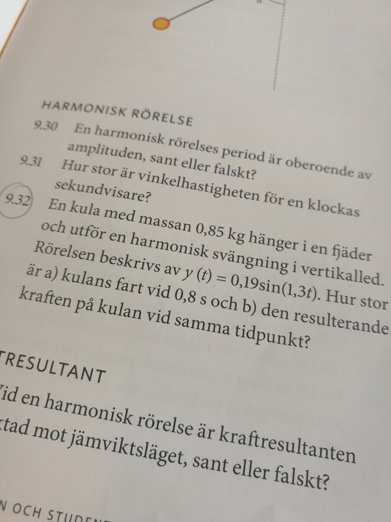 Hm, då får jag v(t) =0,19*1,3cos(1,3t)