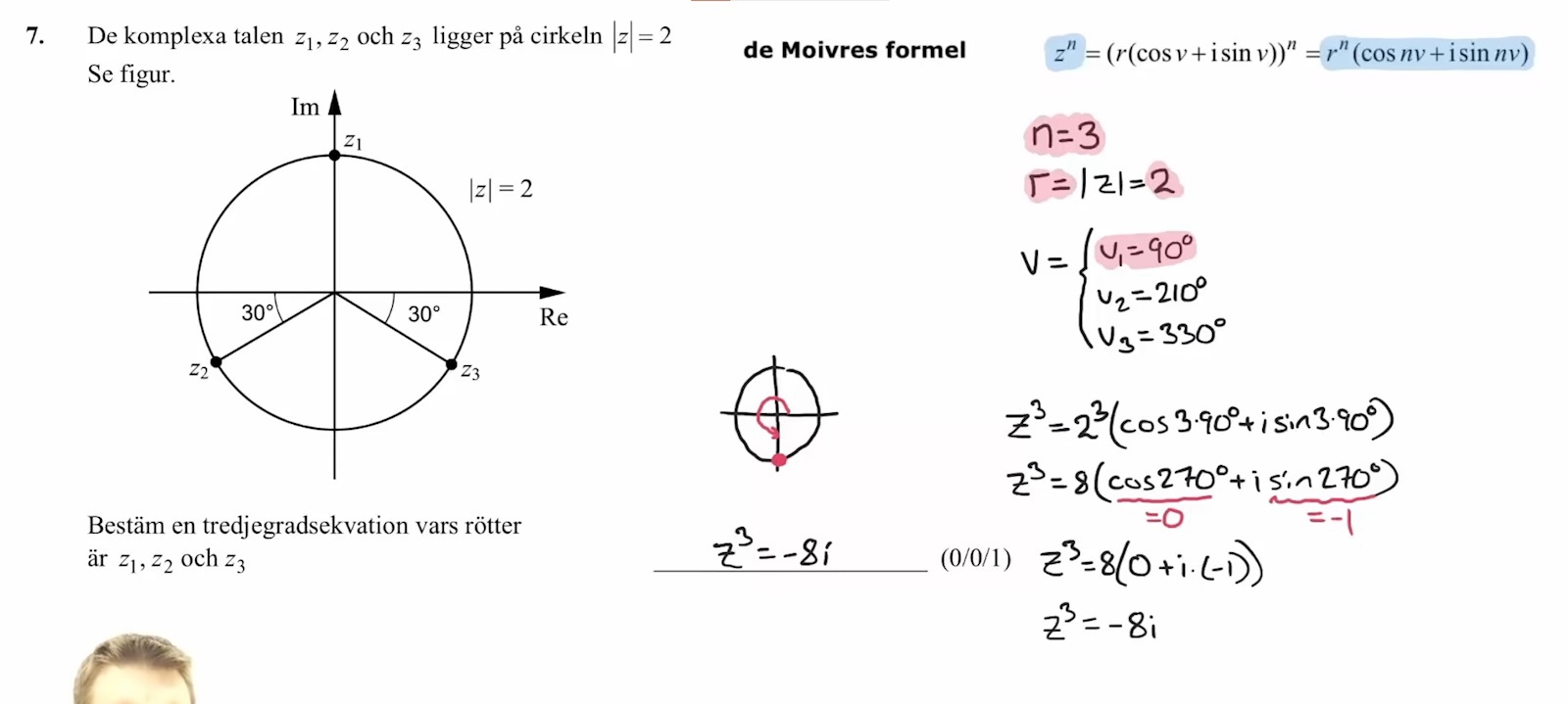 Själva 3:an kommer från de Moivres formel. Den kan man välja att tro på eller kan man titta på dess bevis på t.ex. Wikipedia (eller bevisa den själv).