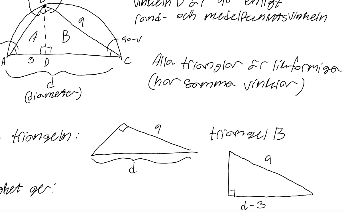 Varför blir hypotenusan dör stora triangeln /diametern 3-x jag tänker 3+x -Likformighet
