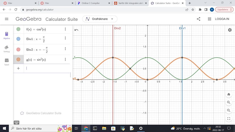 Jag rekommenderar att du ritar upp graferna framöver, nu har jag gjort det enkelt för dig här men utifrån denna bild bör du se varför det är så: