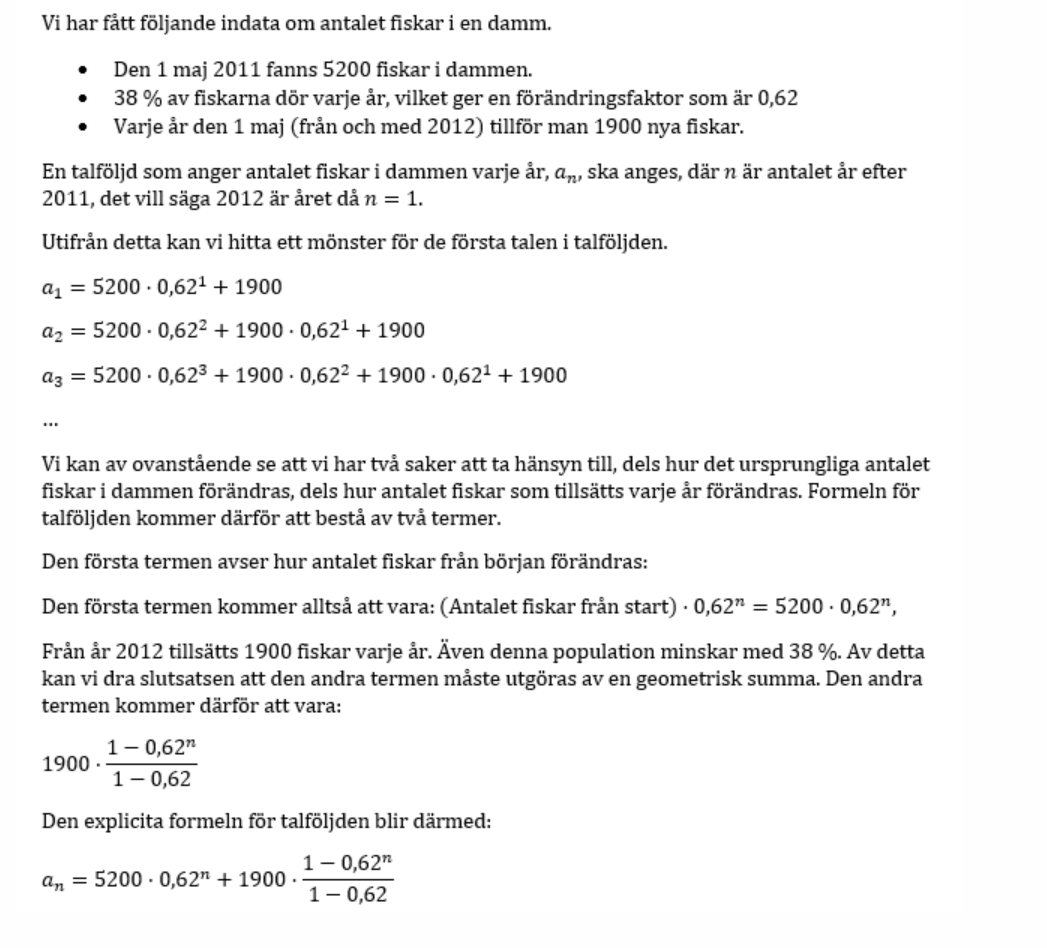 Varför blir svaret en geometrisk summa och inte en geometrisk talföljd? (klurig uppgift)