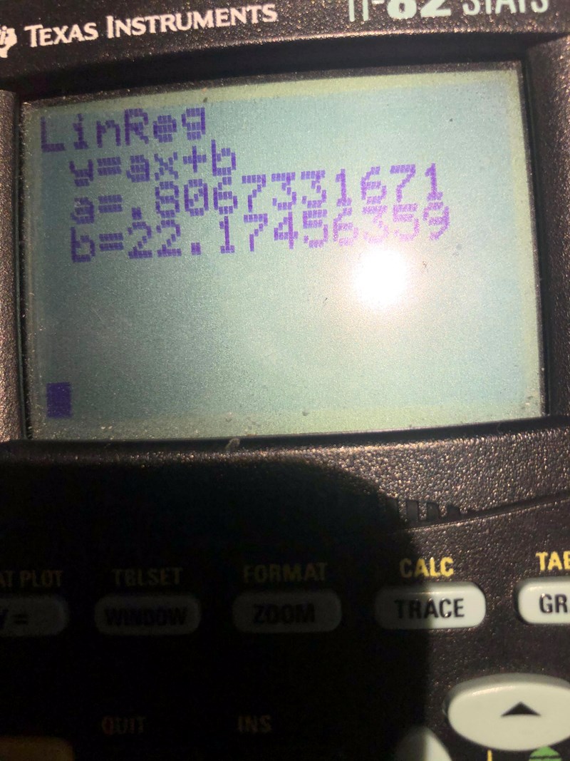 Linjens lutning har ett k värde på ca 0.8 vilket är densiteten. Jag vet inte hur jag ska tolka skärningen.?