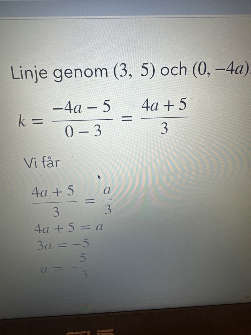 min fråga är hur går -4a-5/0-3 till 4a+5/3 hur blir den positiv från ingenstans borde det inte vara -4a-5/-3 ?