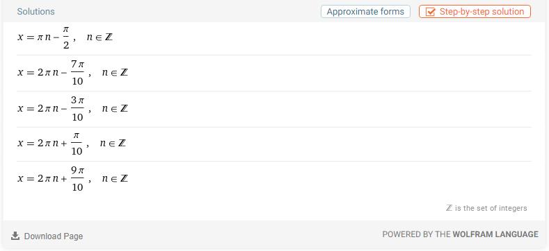 Jag har försökt lösa ekvationen , men av någon anledning får jag bara med två av de fem lösningar som finns när jag dubbelkollar med wolframalpha. Min metod går ut på att göra omskrivningen: och sedan para ihop varje möjlig omskrivning och lösa fyra ekvationer:
