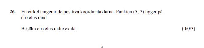Eftersom cirkeln tangerar med koordinataxlarna så kan jag bestämma mittpunktens x och y värden vara med varandra.