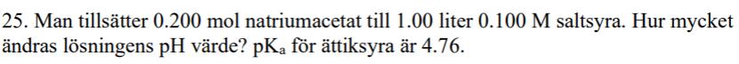 Man har ju från början ett visst antal mol saltsyra, varvid pH i lösning blir 1. När man sedan tillsätter natriumacetat kommer följande jämvikt ställa in sig: