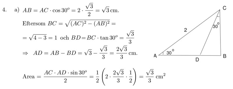 Sen förstår jag inte riktigt facit heller, som blandar in tangens och cosinus. Någon får jättegärna förklara mer ingående hur facit löst uppgiften.
