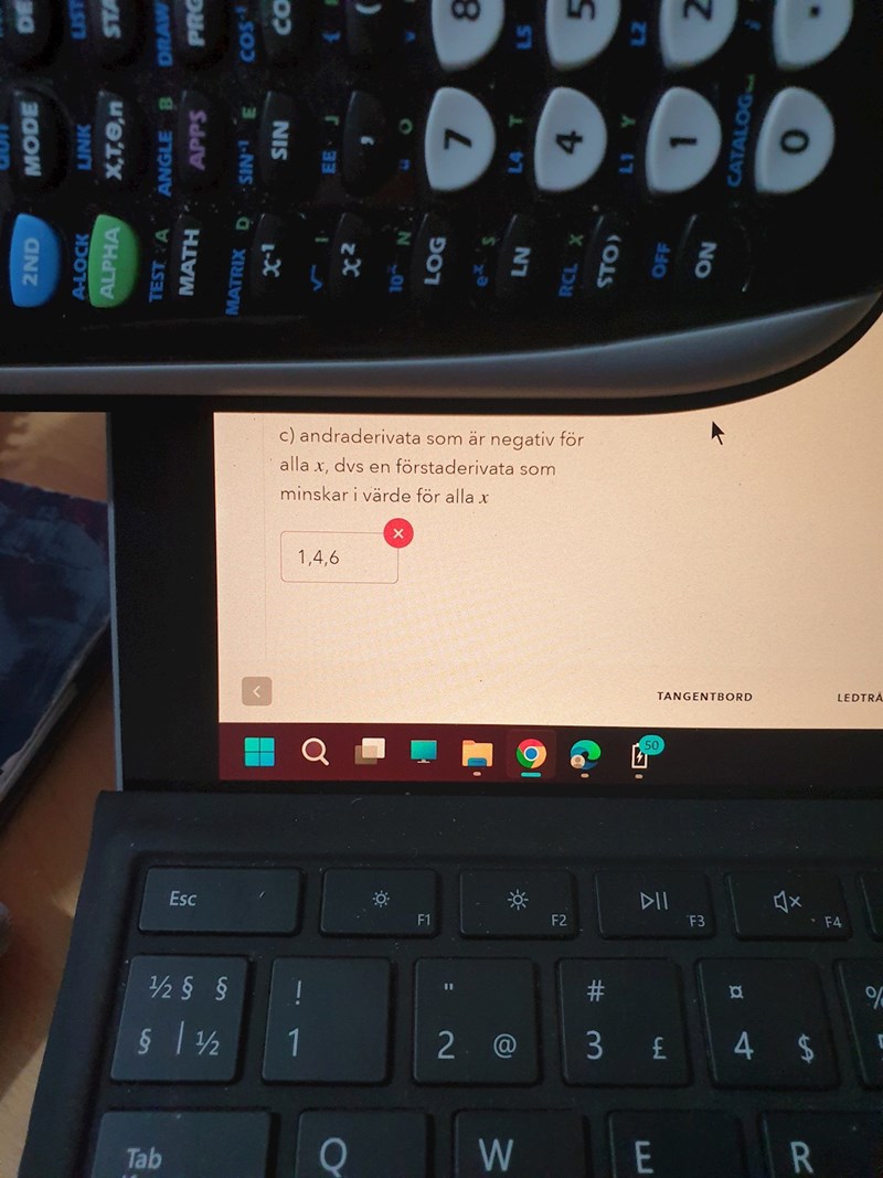 I början är grafen rät, alltså förstaderivatan är konstant. Detta stämmer ju inte enligt kravet att förstaderivatan alltid ska minska.