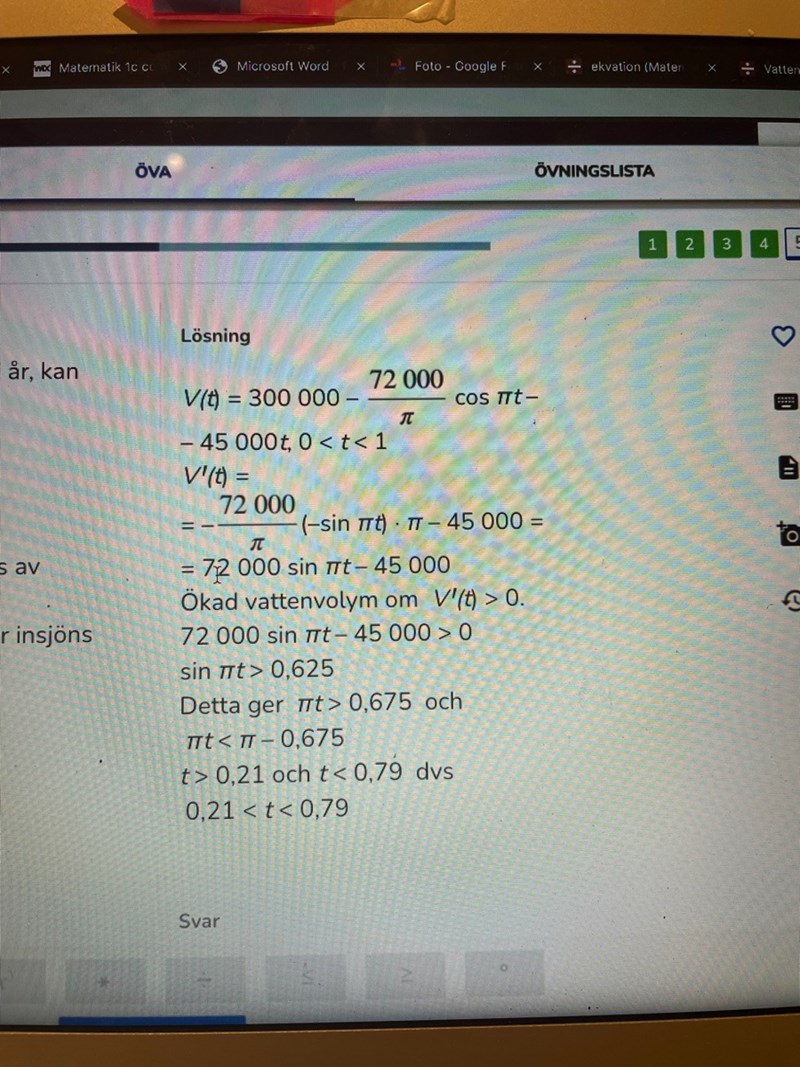 Där det står sin πt>0,625, varför ”försvinner” sin på nästa steg? Och blir istället πt>0,625 och πt<π-0,625?
