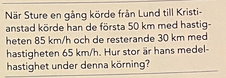 Hur skulle medelhastigheten kunna vara lägre än de två hastigheter han hållit under resan?