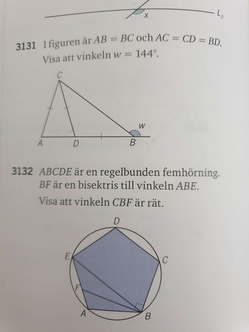 Börja med att kalla vinkel BCD a. (Edit: ser att den kallats x ovan.)
