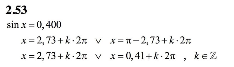Den första är: Du får veta att sin2,73=0,400, vad är den generella lösningen på likningen på sinx=0,400