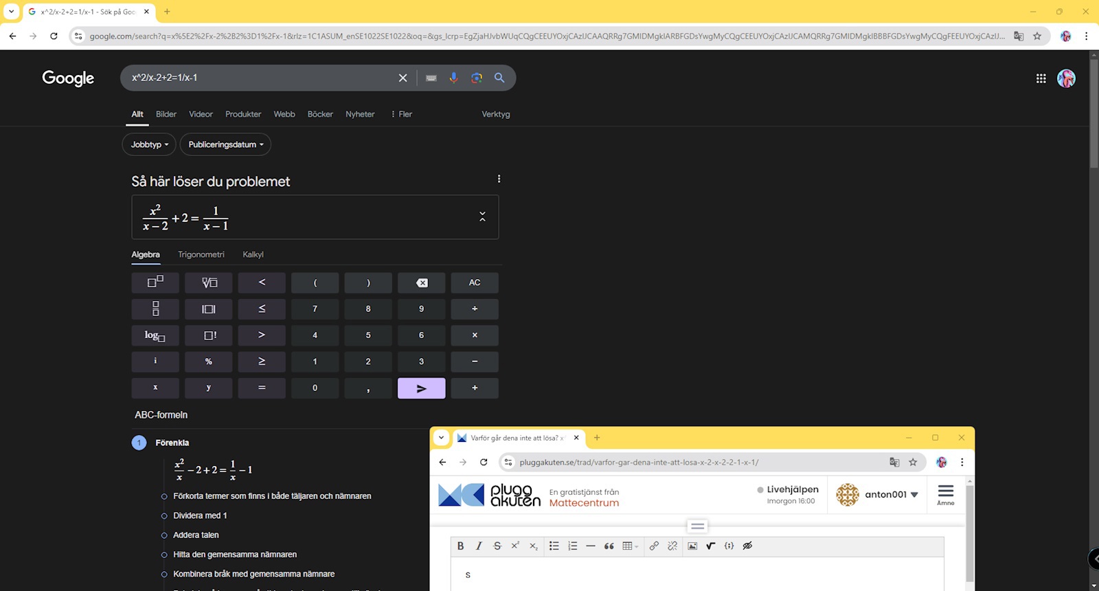 jag tästade att bara "lösa" förenkla men det tog stop altså att jag inte kunde fortsäta med pq formlen