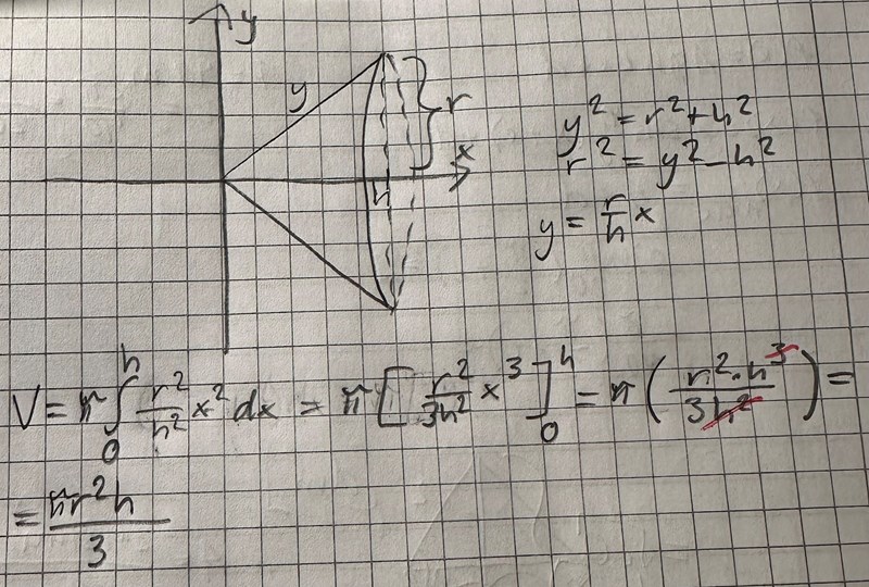 Här utgår man ifrån lutningen på y, dvs y = kx där k = r/h. Varför gör man inte så på uppgiften, på den första bilden?