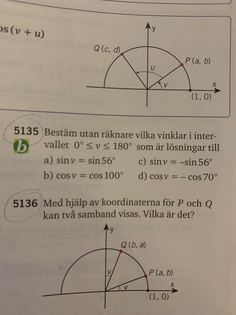 kolla, i min mattebok står det bestäm utan räknare vilka vinklar i intervallet 0°<v<180° som är lösningar till sen står det