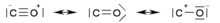 Här är tre så kallade lewis strukturer för kolmonoxid. Ett streck representerar två elektroner. Kolmonoxid kan hoppa mellan dessa tre lägen men den befinner sig i vänstra läget oftare än den i mitten och höger.