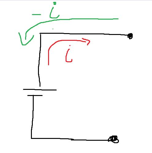 Som min bild ovan, minustecken betyder att strömmen flödar åt andra hållet från riktningen vi har ritat den eftesrom vi anger vad hög och låg potential blir. Det är av samma aneldning du får, om du vill, ange + och - på dina komponenter, så länge du är konsekvent.