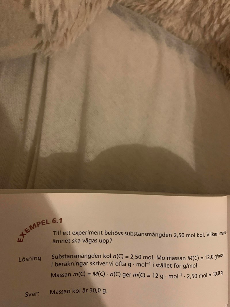 Hey läser i kemi boken på kapitel 6 och när de ska räkna med mol skriver de -1. Vart kom den minus ettan ifrån och varför har man den?
