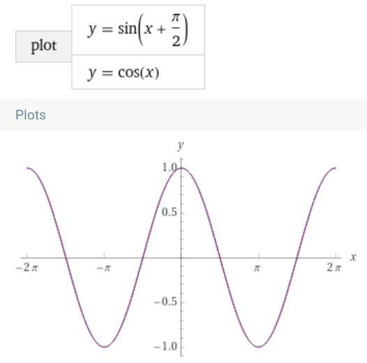 Det hintar om att det bara handlar om en förskjutning i sidled för att få dem att överlappa. Sinus ligger lite före, vi kan flytta den bakåt genom att göra ett litet tillägg på x i sinuskurvan: