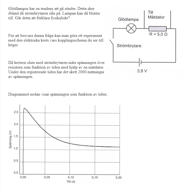 d) När en glödlampa går sönder sker detta oftast då en krets sluts. Ge något fysikaliskt skäl till detta.