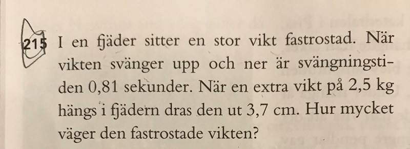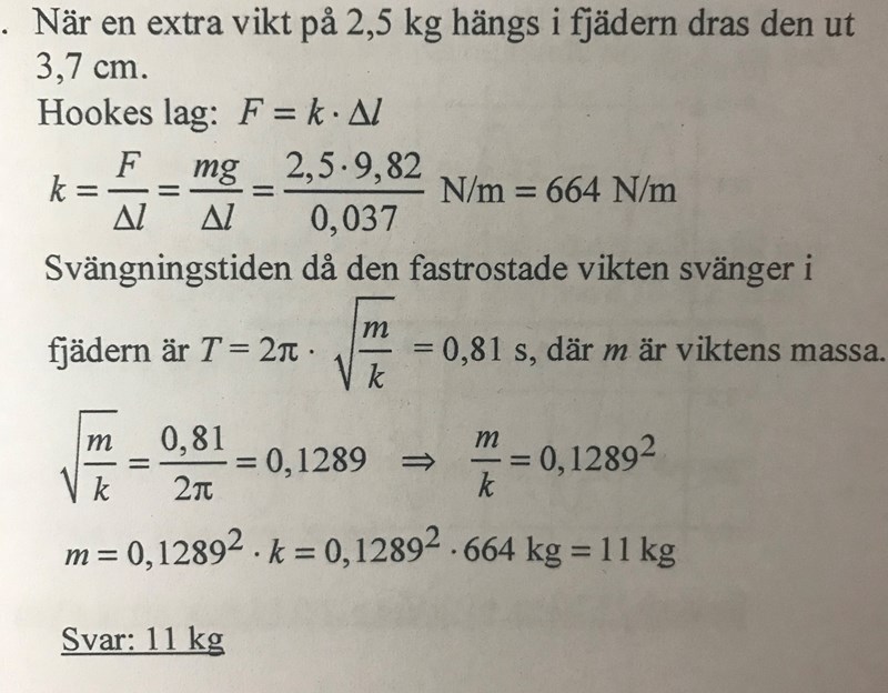 Men jag förstår varför man bara kan ta med massan på extra vikten när man ska beräkna fjäderkonstanten k och inte hela massan (den okända viktens massa + 2,5 kg)?
